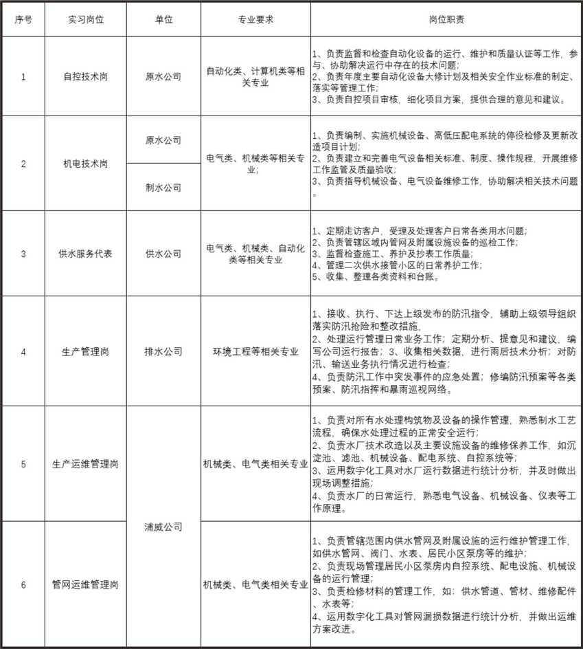为提升我校大学生的职业素养与就业能力,拓展高质量就业渠道,引导学生了解行业一线、增强岗位认知、明确发展方向,校学生处大学生就业指导中心组织学生赴上海城投水务(集团)有限公司暑期实习实践活动。现将有关事项通知如下: