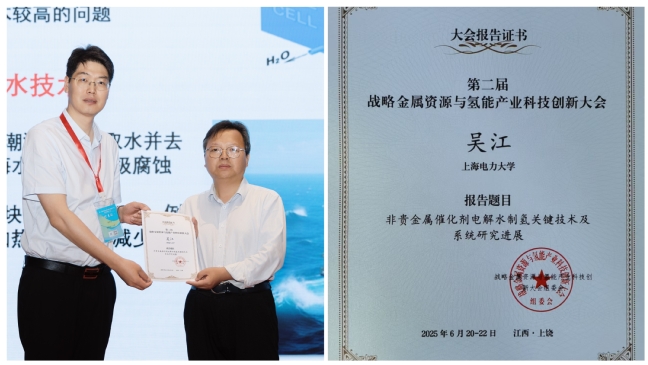 6月20-22日,“第二届战略金属资源与氢能产业科技创新大会”在江西上饶召开。本次会议以绿色、清洁、低碳为主题,围绕战略金属、冶金、材料、化工、综合利用、碳减排、氢能、碳中和等开展广泛的学术交流和研讨,核心理念在于推动战略金属在氢能、碳减排、燃料电池等交叉融合,加快形成新的生产力,促进低碳能源体系构建与社会可持续发展。我校教师吴江教授应邀在大会上作“非贵金属催化剂电解水制氢关键技术及系统研究进展”的主题报告。
