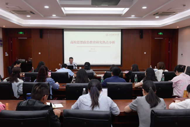 为进一步提升我校教师党的创新理论研究阐释水平,增强思政类课题研究水平,更好推进学校思想政治教育高质量发展,由党委宣传部主办的6月份思政类课题研究系列培训共邀请了上海财经大学党委宣传部部长、马克思主义学院党委书记曹东勃教授,上海理工大学卢岚教授和上海社科院曾燕波研究员三位专家作辅导报告。
