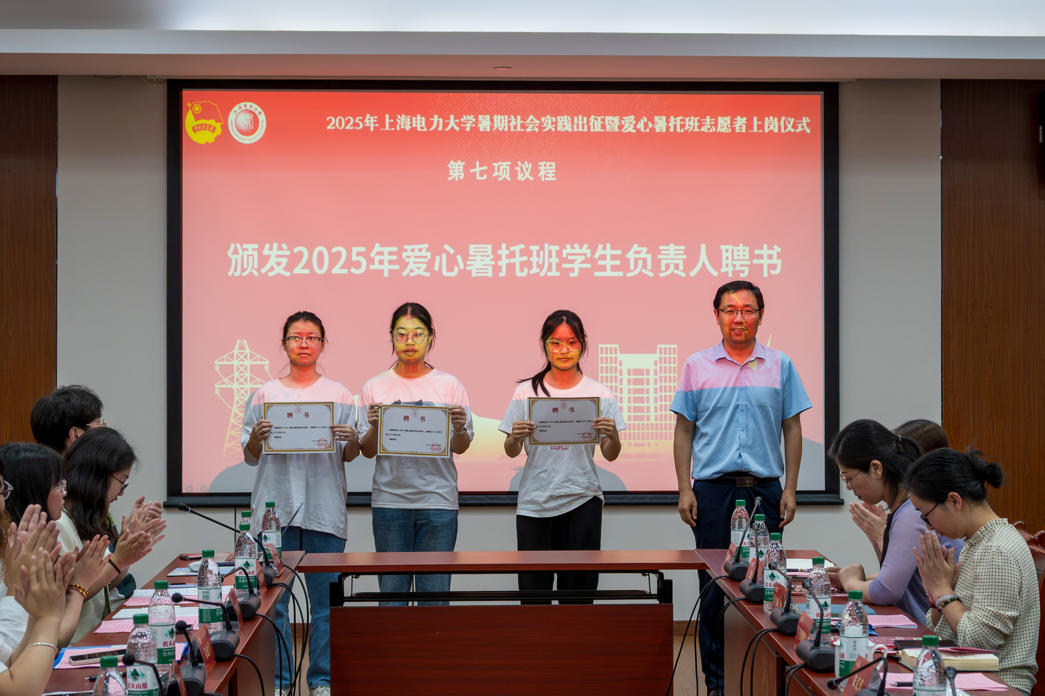 计算机科学与技术学院党委副书记齐永晓、数理学院党委副书记赵月琴、外国语学院党委副书记余嘉为2025年暑期社会实践指导老师颁发聘书。