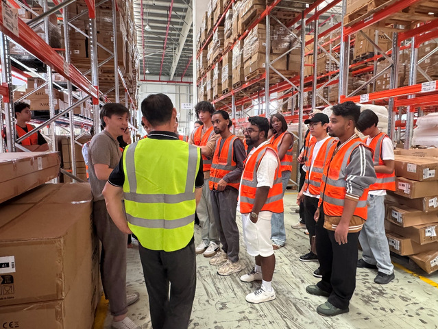 活动当天上午,同学们怀揣着期待与好奇,有序走进企业在洋山港保税区的海外仓。企业相关负责人对师生们的到来表示热烈欢迎,并精心安排了丰富的参观流程。同学们在企业领导的陪同下,通过专业负责人的详细介绍,全面了解了跨境电商企业物流的新模式、新业态。