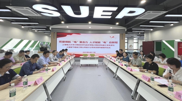 为深化党建引领,有力推动产教融合与专业改革,6月17日,计算机学院计算机学科教工党支部与上海电气电站工程公司设计公司党支部全体党员在临港校区未来能源创享中心举办主题党日暨共建签约仪式,共绘校企协同发展与人才培养蓝图。上海电气电站工程公司总经理助理、上海电气电站工程公司设计公司党支部书记、上海电气工程设计有限公司法定代表人兼执行董事曹京,上海电气电站工程公司副总工程师、上海电气电站工程公司设计公司党支部委员、上海电气工程设计有限公司副总经理、总工程师兼工会主席王斌,上海电气电站工程公司新能源事业部副总经理王涛及上海电气电站工程公司设计公司党支部在沪党员出席活动。党建督查员王国华、校党委组织部副部长李艳受邀出席指导。计算机学院党委书记魏建华,常务副院长张传林,党委副书记齐永晓,党委委员、计算机学科教工党支部书记魏为民,教学秘书徐曼及计算机学科教工党支部党员出席活动。活动由齐永晓主持。