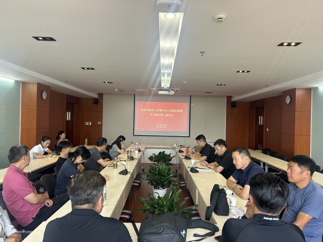 学院党总支副书记、常务副院长于善安通报了近期违反中央八项规定精神的典型案例,他强调,全体党员教师要深刻汲取教训,坚决杜绝违规吃喝、公款消费等不正之风,严守纪律红线。全体党员教师要以此次警示教育会为契机,结合体育学院工作实际,进一步规范经费使用、公务接待、师德师风等重点领域管理,营造风清气正的育人环境。