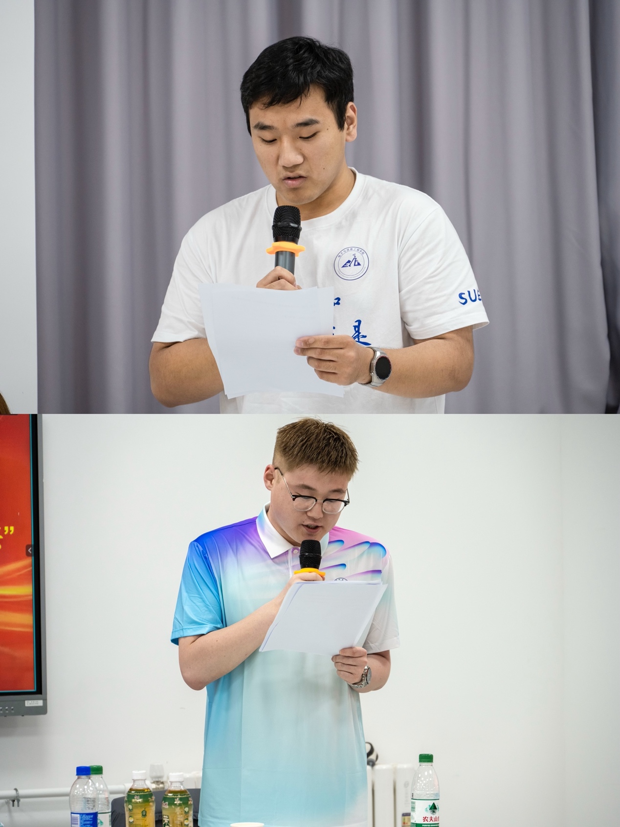 随后,我校实践队代表王昱皓发言。他指出,今年是我校赴宁夏固原实践队的第十个年头,连续十年的奔赴,实践队不仅见证了固原在时代潮流中的飞速发展,也对这片土地产生了浓厚的情怀。两校在长期深入的合作交流中,不仅凝聚了深厚的情谊,也共同见证了固原当地的振兴与发展。他希望两校能够继续深化合作,在新时代新征程中砥砺前行,共同助力乡村教育振兴。宁夏师范大学学生会执行主席陈嘉豪以“‘沪宁’携手绘新篇”为主题进行发言。他指出,我们要做好“知行合一”的实干家,真正地下乡,深入调研乡村教育振兴的痛点难点,做好“桥梁纽带”的联络员,积极交流思想,分享经验,做好“乡村教育振兴”的播种机,建立长效联系机制,把党的关怀、国家的政策,像种子一样播撒下去。