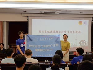 暑期社会实践学生代表黄宇平、杨浦区事业单位暑期实习学生代表赵思远、山东能源暑期实习学生代表师启发等三位同学作交流发言,表达了抓好暑期实习实践机会,通过实习实践拓宽个人专业视野、提升专业知识的决心。