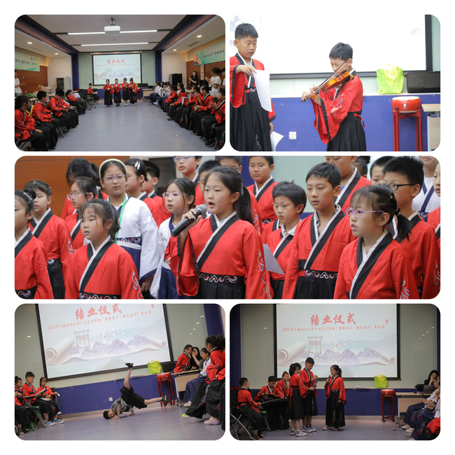 夏令营的尾声,人文艺术学院为学员们精心安排了汇报学习成果的结业仪式。学员们通过朗诵、舞蹈、小提琴演奏和街舞等多种形式,展示了他们在夏令营期间的成长及收获。舞台上,孩子们自信满满,用精彩的表演赢得了在场观众的热烈掌声。