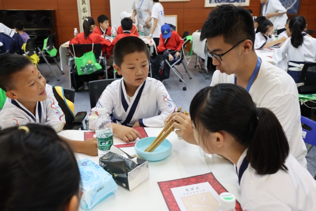 为积极响应学校“校区、社区、城区”三区联动的号召,进一步丰富临港新片区以“大手牵小手”的大中小一体化合作育人模式,充实临港新片区中小学生的暑期生活,7月1日-5日,由我校临港新校区建设综合办公室与人文艺术学院联合主办,以“临港大学堂国风传承人”为主题的“童蒙养正·雅艺美行”夏令营开营。本次夏令营以中华优秀传统文化中的诗词歌赋为主线,精心设置了一系列丰富多彩的人文艺术类课程,带领70余名临港新片区小学生领略中华优秀传统文化与艺术的独特魅力。