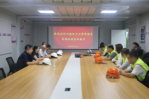 在标段二电力科技大楼项目现场慰问后,仰颐认真听取了施工总包单位关于项目进展的汇报,并与各参建单位就建设难点进行了深入交流。她强调,安全是工程建设的生命线,各参建单位必须严格落实高温劳动保护措施,进一步落实完善防台防汛应急预案,确保项目工程建设安全、有序推进。上海建工二建第二工程公司党总支书记沈燕表示,将坚决贯彻学校要求,持续强化安全管理,全力以赴保障工程高质量建设。