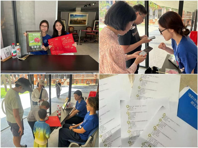 做好文化桥梁,传递非遗温度。华山路263号展馆内,实践队员们身着统一队服,以微笑迎接每一位参观者。他们化身展馆志愿者通过双语讲解,让伊朗游客理解了绒绣作品“以针代笔、以线润色”的东方美学,让中国游客惊叹于波斯毯几何纹样中的数学密码……同时,发放230份绒绣出海调查问卷,涵盖老中青三代调查对象,为上海绒绣的国际传播提供了民意参考。