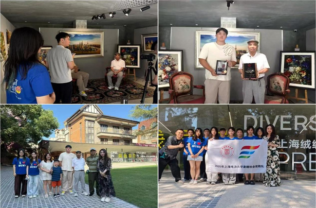 参与创新对话,共探非遗新生。7月1日,实践队全程协助新华社开展专访。队员们与记者逐字打磨访谈脚本,设计绒绣与潮流服饰的创意陈列,保障TEMOINS品牌创始人顾雨峰与包炎辉老师的跨界对话顺利呈现。希望通过年轻人的创意,让绒绣走进日常生活,包老师在镜头前的期许,与实践队协助推进的白玉兰主题DIY课程进校园计划不谋而合。队员们见证了“非遗文化传播大使”的授予仪式,也亲历了非遗从博物馆走向生活场的重要跨越。
