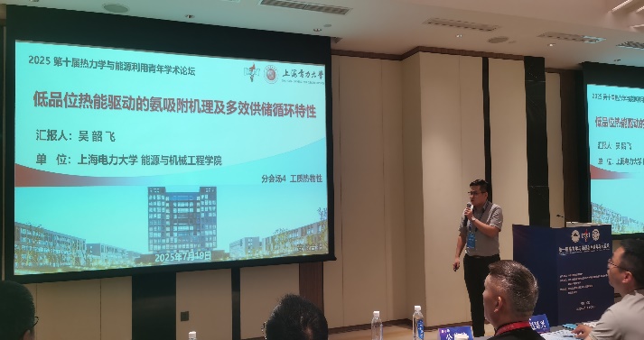 我校能源与机械工程学院潘卫国教授、张涛副教授受邀参加本次会议。在工质热物性分会场,吴韶飞副教授作了题为“低品位热能驱动的氨吸附机理及多效供储循环特性”的分组报告,报告主要围绕基于卤化物-氨和金属有机框架-氨工质对的热力学循环在低温环境储氨及供热、高温环境储氨及制冷的高适应性等方面进行汇报交流,研究成果获得与会专家学者的高度评价。