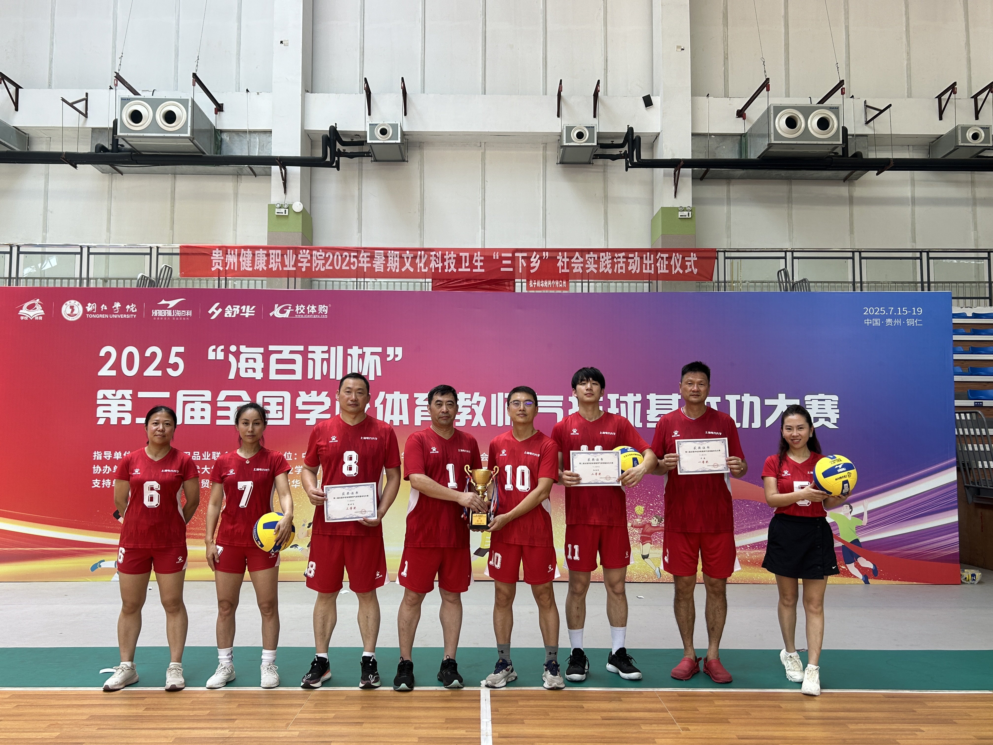 7月16日至17日,由中国体育用品业联合会学校体育工作委员会主办的2025“海百利杯”第二届全国学校体育教师气排球基本功大赛在贵州铜仁举行。我校体育教师代表队凭借出色的团队协作与扎实的基本功,一路过关斩将,最终斩获团体赛冠军,展现了卓越的竞技水平和教学素养。