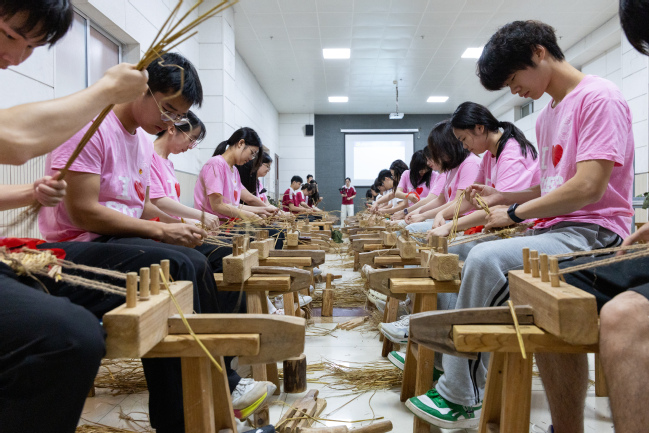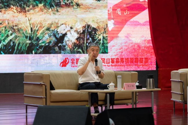 沉浸体验:重走革命道路,传承红色基因。在音乐党课环节,团队成员用青春的歌喉唱响《十送红军》《映山红》等经典革命歌曲,激昂的旋律与真挚的情感交织,唱出了新时代青年对党的赤诚之心。“体验红军的一天”活动中,队员们重走崎岖山路、自制红军餐、深入走访当地群众,既在汗水中感悟革命年代军民鱼水情深,又在与老乡的交流中见证革命老区乡村振兴的崭新图景。学编红军草鞋时,粗糙的稻草磨红了指尖,团队成员更加深刻地体会到当年红军战士在艰苦条件下自力更生、乐观坚韧的革命精神。访谈教学环节中,开国少将龙开富之孙龙小钢、革命烈士刘光典之子刘玉平深情讲述红色家风,那些饱含信仰与初心的故事,让跨越时空的革命精神在新时代焕发出强大的感召力。
