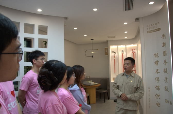 同日下午,实践队先后前往国网镇江供电公司京口变电运维班李迎涛劳模创新工作室和不停电作业中心陈俊劳模工匠工作室进行参观学习,开启一场聚焦“电力行业科技创新”的深度研学之旅,见证劳模工匠技艺与人生的双向奔赴。