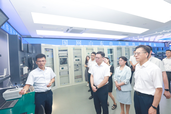 在电科院院长田健、副院长张都清等工作人员陪同下,张波及有关职能部门及学院领导先后参观调研了山东电科院主题文化馆、网络安全实验室、电能质量与技术线损监测分析实验室和职业卫生防护与检测技术实验室。