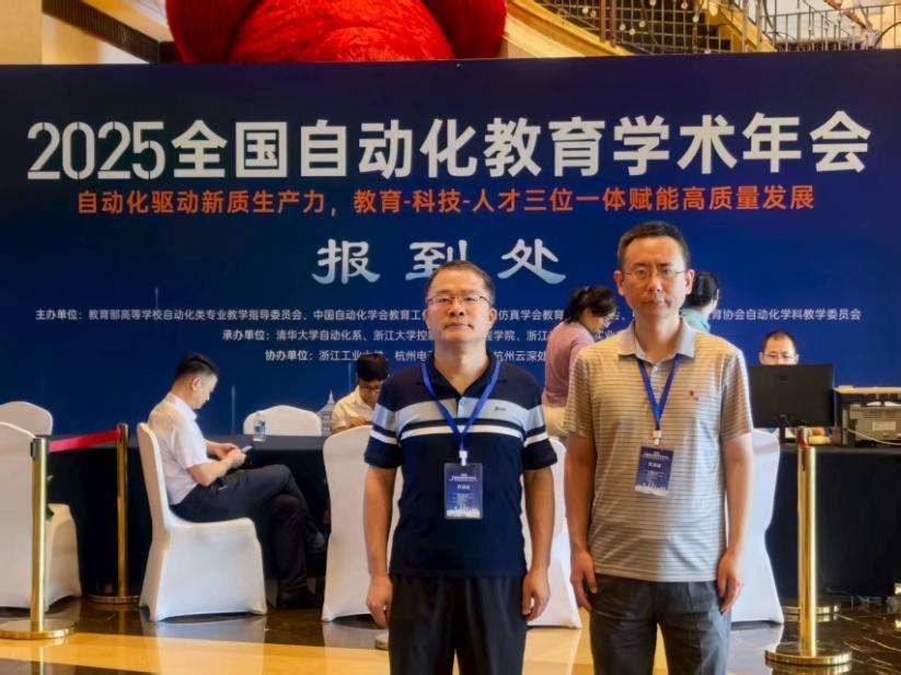 2025年全国自动化教育学术年会于7月20日-24日在浙江省杭州市召开。该年会由教育部高等学校自动化类专业教学指导委员会、中国自动化学会教育工作委员会等单位主办,每两年举行一次,此次年会由清华大学自动化系、浙江大学控制科学与工程学院、浙江天煌科技实业有限公司承办。来自全国各高校的一百多位自动化专业负责人和教师代表参加了此次盛会。我校自动化专业负责人薛阳和教师代表康英伟受邀参加此次会议。