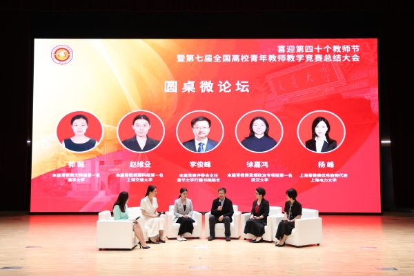 在第七届全国高校青年教师教学竞赛总结大会圆桌论坛中,杨峰老师这样说道:对于青教赛,我并不是天赋型选手,历经层层选拔和培育,不管是对我热爱的教学,还是整个团队来说都是很好的历练,但其中受益最大的是学生,这也是我坚持参赛的最大动力。虽未登顶,攀登的路上亦有风景;坚持热爱,每个普通人都能闪闪发光。从她的发言中,让我们看到了也感受到了,一个在热爱中探索、在热爱中坚持、也在热爱中不断寻求与奋斗的模样,它是生动的、是震撼人心的、也是让人记忆深刻的,且有向阳而生的力量。
