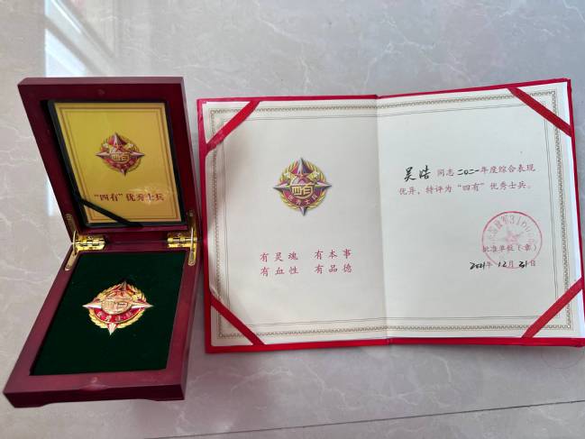 秉持着“逢敌敢亮剑”的精神,我刻苦训练,冲锋在前,不断鞭策自己,努力提高军事技能。体能考核常年全连第一,并在2021年3月的全营群众性练兵比武中取得了“全营体能第三”的佳绩。在2021年底被评选为义务兵骨干,2022年通过了集团军“预提指挥士官”考核,被评为“区队先进个人”。这些成绩的背后,无不体现着我对军营的无限热爱和对军人身份的无比自豪。