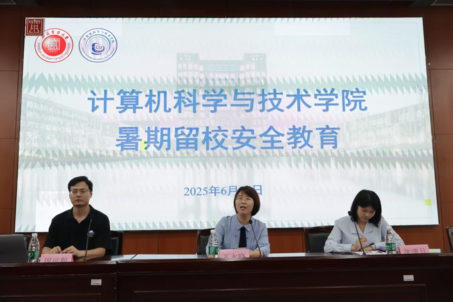 暑假以来,为做好留校学生教育管理与服务工作,计算机学院召开2025年暑假留校学生安全教育大会,多次深入园区走访检查学院留校学生在校学习与安全情况。