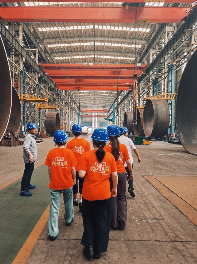 这些领军企业将绿色低碳理念融入产品全生命周期。江苏海力风电专注于海上风电零部件制造,队员们调研时了解到,其海上风机在20-25年运行期内实现真正的零碳排放与零污染;企业正积极探索叶片回收等全产业链绿色化举措,单台风机全生命周期可减排数十万吨二氧化碳。在上海电气风电东台公司,队员们近距离观察配备智能偏航系统的风力发电机,更对其应用的AI大模型+传感器实现“不停机故障检测”印象深刻,感受到技术如何显著提升风电可靠性与经济效益。