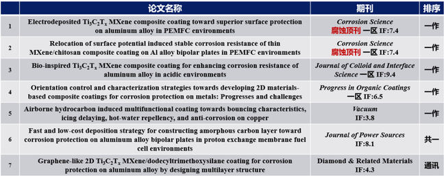 基于研究成果,王天歌在《Corrosion Science》等金属表面处理领域顶级期刊上以第一、共一及通讯作者发表SCI论文7篇,申请专利2项。这些成果受到材料科学与工程、材料人、高分子科学前沿等业内媒体报道,浏览量过万。