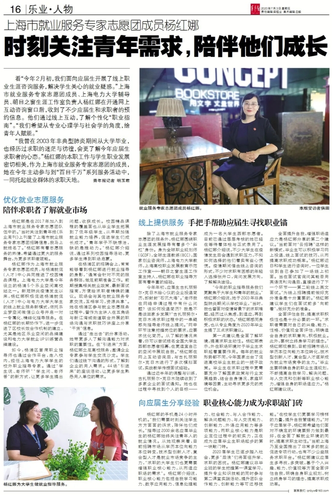杨老师还总结了可推广可复制的经验案例,被全校各学院、上海市乃至全国的兄弟高校邀请开展讲座,被更多人看到和认可。许多辅导员老师表示,“杨老师帮我们把工作做在了前面,现在学生的生涯规划意识较往年提升了许多,很多人在毕业前就明确了人生方向。”