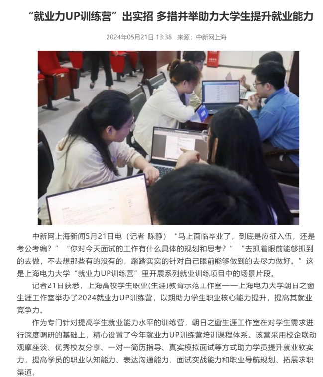 工作室理论教育与实践养成相结合,在提升育人效力方面做出了许多创新实践,创建了品牌活动“就业力UP训练营”,面向全国组织开展了“整合资源提升大学生职业软实力”“高校生涯教育本土化的实践与探索”等5场研习沙龙,与多家高校开展双向交流,成果共享,联合区、街道开展生涯指导,受益学生超万名,受到光明日报、解放日报、青年报等20余家媒体报道。