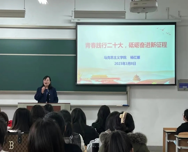 很快,她的付出在课堂上收到了回报,在担任《思想道德与法治》等课程期间,她的学生评价排名靠前,学生考勤率也遥遥领先。她开展的专题党课,深受入党积极分子、学生干部欢迎,二级学院定期邀请她前来讲座。2022级国际经济与贸易专业学生吴继慧在评价中写道:“杨老师的党课是生动的鲜活的,她的教诲藏在一个个故事里,让我听得进、记得住。”