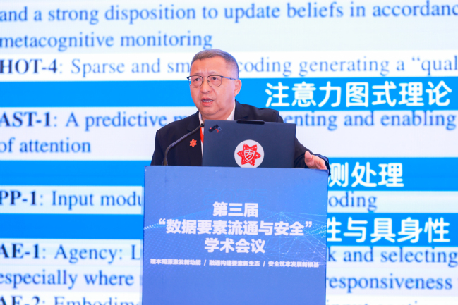 华东师范大学教授周傲英在致辞中指出“数据是新的动力”,亟需重新认识其核心价值,通过提升数据认知,树立正确的数据观,并强调“数据+数学”构成数字文明中信任机制的基本特征。