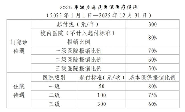 六、2025年度上海市城乡居民(大学生)医疗保险待遇和报销比例如下:
