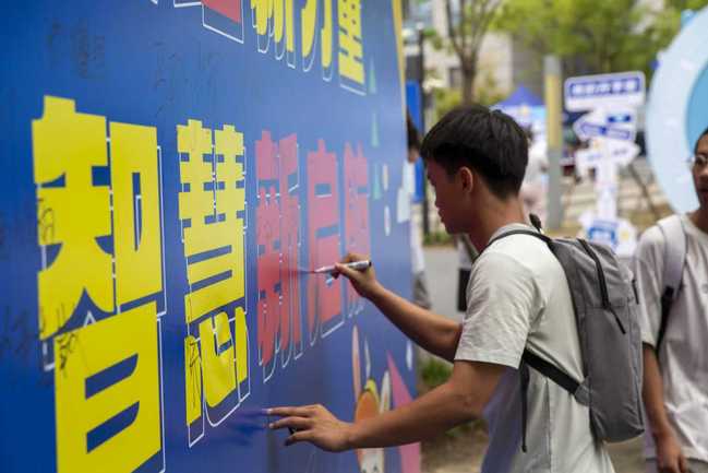 为让新生们第一时间感受学院的温暖,数理学院提前规划、精心筹备,将迎新现场打造成充满“数理温度”的打卡地。入口处,以学院吉祥物“数理兔”为标志设计的“数理新力量 智慧新启航”互动签名墙格外醒目,新生们纷纷拿起笔,写下自己的名字与大学目标。学院还为每位新生准备了“成长大礼包”,除延续往年深受好评的数理兔定制帆布包、院训文件夹外,还新增了印有“博学明道 睿思笃行”的院训和“‘扇’解诈骗套路 数理学子稳‘赢’”防诈口诀的折扇。迎新现场,身着蓝色志愿服的学长学姐们热心上前,帮新生搬运行李、引导报到流程,还不时用相机捕捉新生初入校园的笑脸,“我们去年入学时,学长学姐也是这样帮我们的,现在终于能把这份温暖传下去了。”志愿者林新宇笑着说。