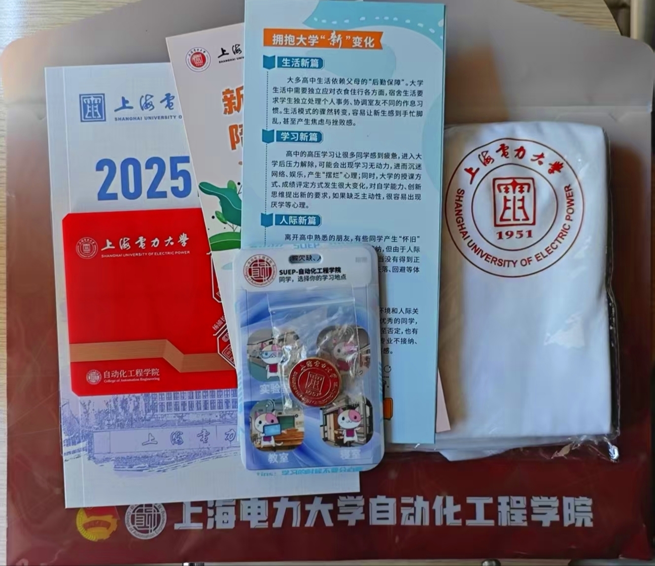 更让新生眼前一亮的是学院的专属惊喜:以自动化专业吉祥物“Auto猫”为原型的文创礼包里,以学校两校区地图为特色的电路板、卡套印着可爱的Auto猫,细节处尽显专业特色。