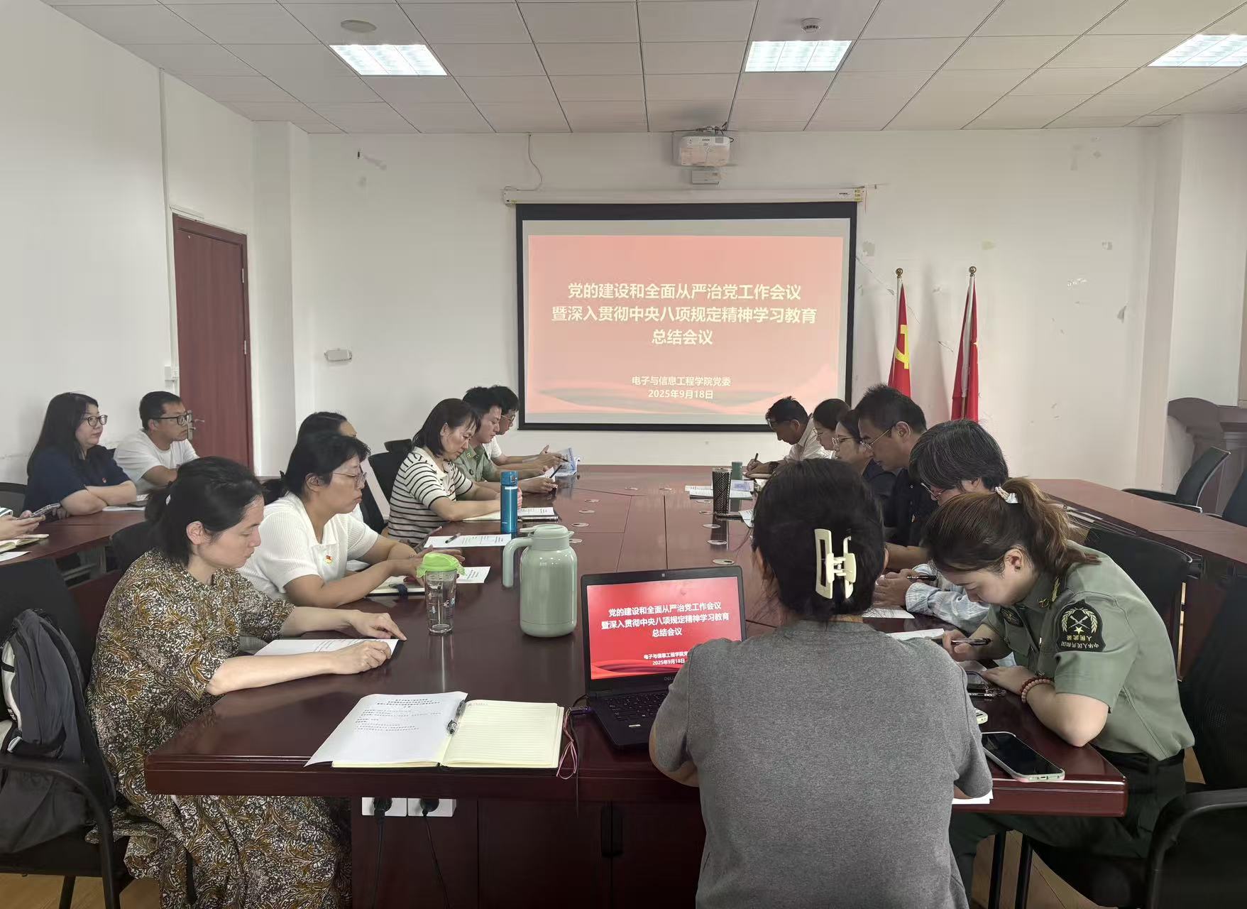 9月18日,电子与信息工程学院党委在电计楼B402会议室召开党的建设和全面从严治党工作会议。学院党政领导班子、党委委员、各党支部书记和党员代表参加会议。会议由学院党委书记何西培主持。