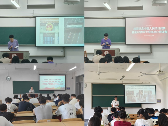 为传承伟大抗战精神,激发学生爱国热情,首日教育现场组织学生分享观看纪念中国人民抗日战争暨世界反法西斯战争胜利80周年大会直播的心得感悟。学生代表结合历史文献与时代背景,从“抗战精神的时代价值”“青年一代的使命传承”等角度展开交流,学生谈到:“从无数先烈用生命守护家国,到如今我们为强国建设拼搏,‘爱国’二字始终是不变的精神内核。作为数理学子,我们更要以扎实的专业能力,为国家科技发展贡献力量。”真挚的分享让同学们进一步强化了铭记历史、珍爱和平、奋勇前行的思想自觉。