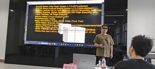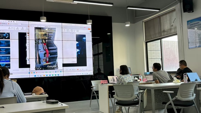 为增强学生对技术实际落地的感知,课程组织学生赴上海大学工业巡检实验室进行实地教学。在卢芳芳老师的带领下,同学们亲眼目睹AR技术如何赋能工业运维流程。实验室研究人员演示了基于AR眼镜的设备巡检与操作辅助系统,信息实时叠加于真实场景中,实现“所见即所得”的交互效果。通过亲身体验,同学们对EasyAR Mega提出的“赋能千行百业”有了更直观的认识,从采集到开发,有效锤炼技术能力。