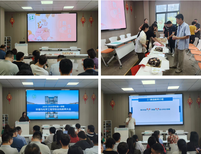 会议伊始,学院党委联合学院分工会,为下半年过生日的教师们精心策划了一场温馨的集体生日会。现场氛围轻松愉悦,老师们畅聊教学心得、分享生活感悟,为新学期凝聚起温暖有力的团队向心力。新进教师丁斯茗发表入职感言,他结合自身专业背景,详细介绍了个人职业规划,字里行间流露出对教育事业的热爱与对未来在环化学院工作的期待。