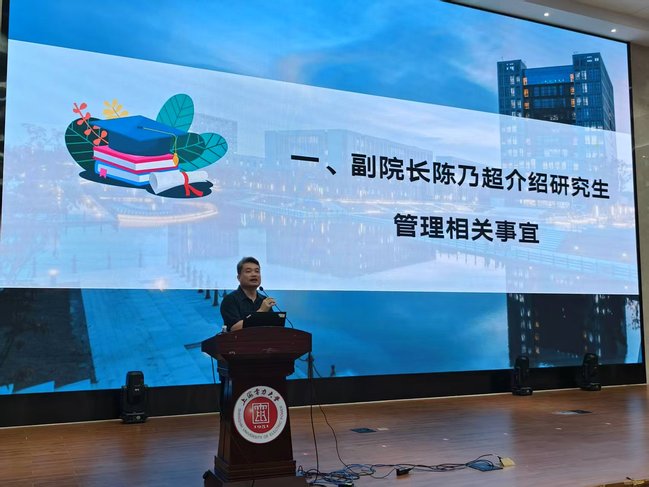 陈乃超向全体新生详细介绍学院各项基本情况,以及研究生日常管理相关规定。
