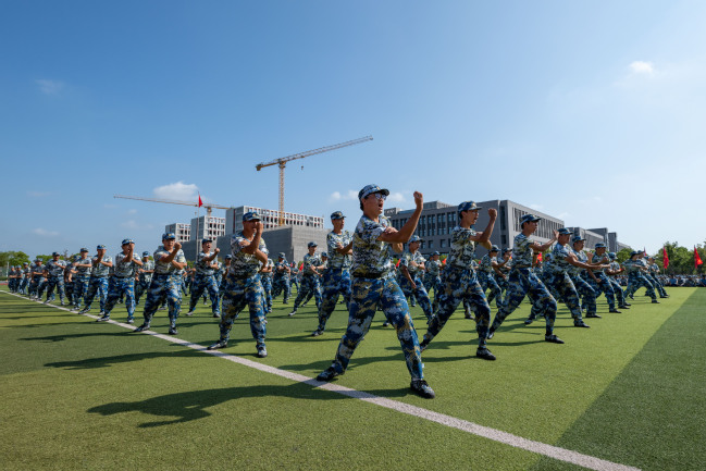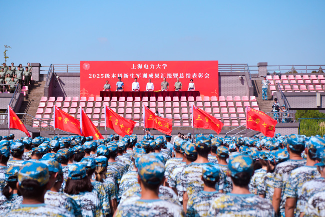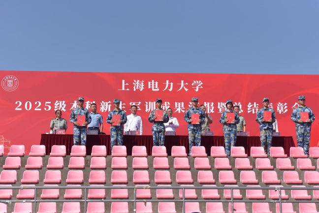 9月28日上午,我校2025级本科新生军训成果汇报暨总结表彰大会在临港校区体育场举行。校党委书记宋来,中国人民解放军94804部队副旅长韩晓钋,校党委副书记、副校长朱克勇,军训师师长刘杰传,军训师政委、校武装部部长金炜,校学工部部长陈姗姗以及各二级学院党委副书记、全体新生辅导员以及承训部队教官出席大会。大会由武装部副部长余南飞主持。