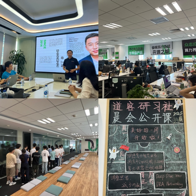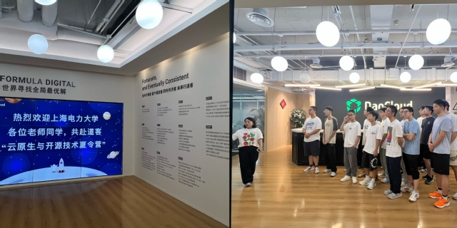 9月8日上午,同学们第一站参观DaoCloud(道客)公司。在道客公司,同学们参观了现代化的企业展厅与技术工作环境,听取了公司技术专家关于云原生技术发展趋势及企业级落地案例的精彩分享,并就开源社区贡献、技术选型、职业发展等话题与一线工程师进行了深入热烈的座谈交流。此次企业行不仅让抽象的技术概念变得触手可及,更极大地拓宽了同学们的行业视野,激发了他们的技术创新热情。