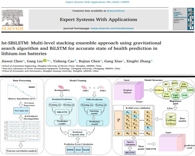 在《Expert Systems with Applications》上发表的论文“Ist-SBiLSTM: Multi-level stacking ensemble approach using gravitational search algorithm and BiLSTM for accurate state of health prediction in lithium-ion batteries”(DOI: 10.1016/j.eswa.2025.129009),针对锂离子电池容量再生现象及健康状态预测问题,提出了一种基于自适应级联优化的多层混合预测方法 Ist-SBiLSTM,显著提高了预测准确性。
