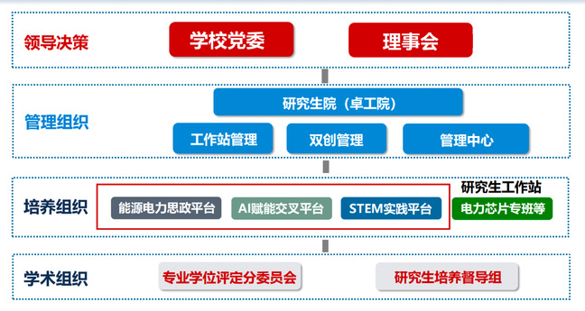 taptap体育卓工院师资队伍由校内二级单位导师和校外专家组成。以“能源电力学科思政教育中心”“AI赋能学科交叉教育中⼼”“STEM教育实践创新中⼼”建设,以及“电力芯片”等专班的招生培养为重要抓⼿,taptap体育卓工院将全力推动卓越工程师的培养,逐步将人工智能贯穿教学全过程,实现培养模式智能化转型,确保内涵与实践并行发展。