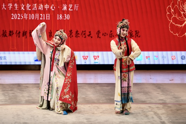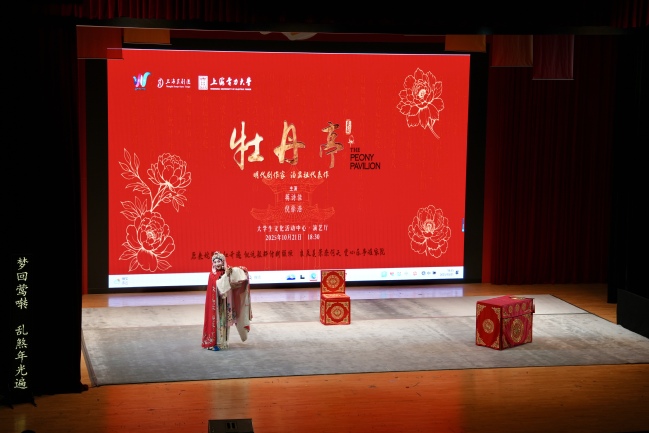 10月21日晚,临港校区大学生文化活动中心演艺厅内,婉转昆腔漫过座席,水袖剪影渐次浮现,由校党委宣传部、学生工作部(学生处)联合主办的“高雅艺术进校园”——昆剧《牡丹亭》专场在这里精彩上演。上海昆剧团的青年演员们以精湛的表演艺术,将中国古典戏曲的独特魅力带入校园,为师生奉上一场跨越时空的非遗盛宴。本次演出吸引了近500名师生观看。