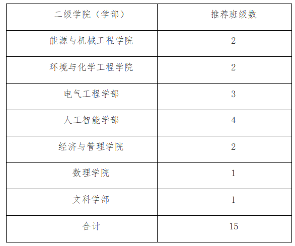 推荐数量根据学院(学部)班级数量确定如下: