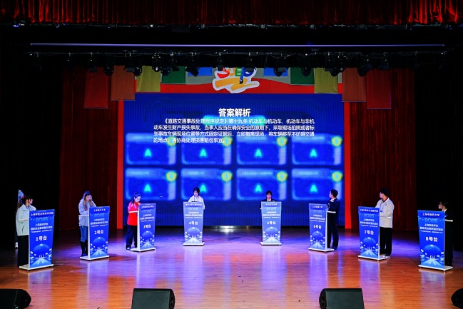本次展示活动分为团队展示和个人展示两个环节。在团队展示环节,经过前期校内选拔和四个片区的激烈竞争,来自上海师范大学天华学院、上海理工大学、上海震旦职业学院、复旦大学上海医学院、华东政法大学、上海海事大学、上海立信会计金融学院、上海中医药大学等8所高校的代表队脱颖而出,会师市级展示第一阶段。团队角逐设置了“有问必答”“一站到底”和“安全公开课”三个环节,全面考察各战队对国家安全的认知深度、知识广度以及宣传阐释能力。在“有问必答”和“一站到底”环节,各队选手沉着应对,展现了扎实的知识储备和快速反应能力。“安全公开课”环节则成为各队创意与思辨的舞台,围绕生态安全、科技安全、生物安全、国土安全、人工智能安全、文化安全等国家安全关键领域,各参与队通过情景剧、故事演绎等多种形式,生动诠释了国家安全的内涵与外延,展现了当代大学生对总体国家安全观的深刻理解和自觉践行。