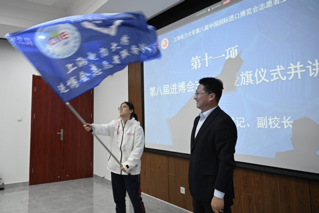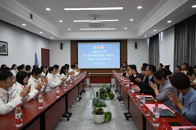 为深入贯彻落实习近平总书记对中国国际进口博览会重要指示精神和“越办越好”总要求,传承发扬“奉献、友爱、互助、进步”的志愿精神,引导全体“电娃”志愿者高质量完成进博会服务保障各项任务,10月24日下午,我校第八届中国国际进口博览会(以下简称“进博会”)志愿者出征仪式在临港校区学术楼305会议室举行,杨浦校区进博会志愿者通过线上会议参加。校党委副书记、副校长朱克勇出席,党委宣传部部长石笑寒,党委学生工作部(学生处)部长(处长)陈姗姗,研究生院副院长兼党委研究生工作部部长张艺,党委组织部副部长兼党委组织员马姗姗,后勤保障处副处长余南飞,以及各学院(学部)党委分管领导、团委书记和全体进博会志愿者参加。仪式由校团委挂职副书记张潇月主持。