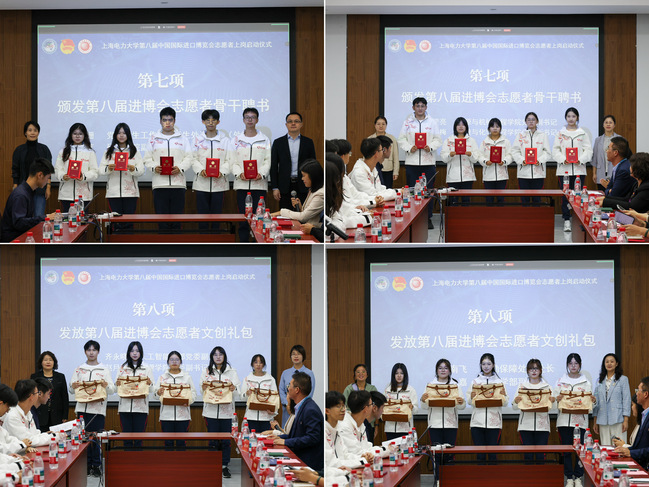 党委学生工作部(学生处)部长(处长)陈姗姗、研究生院副院长兼党委研究生工作部部长张艺、能源与机械工程学院党委副书记涂莹亮、环境与化学工程学院党委副书记周冬梅分别为志愿者骨干颁发聘书。后勤保障处副处长余南飞、人工智能学部党委副书记齐永晓、数理学院党委副书记赵月琴、文科学部副主任余嘉为志愿者代表发放文创礼包。