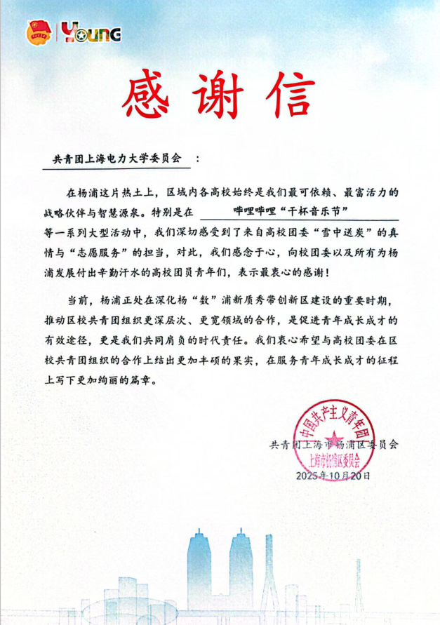 随后,辛立对我校青年学子在哔哩哔哩“干杯音乐节”等大型活动中展现出的奉献精神与专业素养,给予了高度肯定并现场送上感谢信。