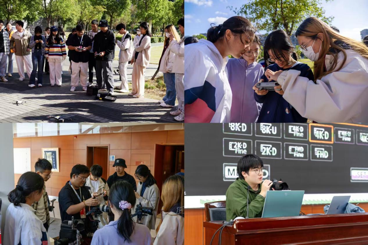 在实践体验环节,学员们围绕个人兴趣方向开展了深入的专项学习与实操训练。青春SUEP技术部主任杨预翔、宋齐晟系统讲授了会议与活动摄影的全流程规范与实战技巧,重点提升学员对重要场景的捕捉能力与高效出图水平。同期,施嘉浩组织户外飞行训练,指导学员掌握无人机与稳定器的基本操作及航拍构图方法。平面设计部主任宋雨薇与资深干事申宇则带领学员进行设计工具平台的实操演练,完成了一系列文创物料与宣传海报的创作实践,有效提升了学员的视觉表达能力与设计落地能力。