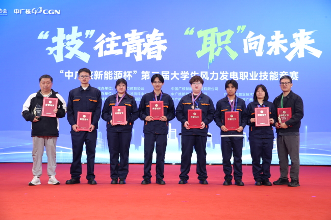该项赛事由中国电力教育协会与中国广核新能源控股有限公司联合主办,中电联人才测评中心有限公司、中广核新能源培训公司等单位承办,以“深度推进产教融合,促进学生就业,对接企业招聘需求,以赛选才、以赛育才”为核心目的,为电力行业培养优秀技能后备人才。学院高度重视赛事备赛组织工作,赛前成立专项小组,精准对接赛事要求,统筹协调师资、实训场地、器材耗材等资源;积极宣传竞赛,有三十余名学生报名参加了初赛,2支队伍进入决赛;暑期备赛期间,专业教师指导团队带领学生前后赶赴南宁、杭州参加风电机组运维培训。参赛学生深入学习理论知识,反复打磨实操技能,以饱满的状态迎接挑战,在决赛中取得了好成绩。