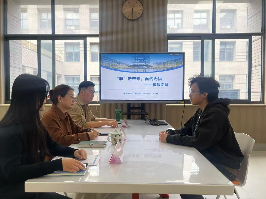 为深化就业指导服务、提升学生职场竞争力,11月6日下午,环境与化学工程学院在环化楼A207会议室举办模拟面试活动。本次活动由学院党委副书记周冬梅、学院就业负责人邬腾飞以及毕业班辅导员白梦菊担任面试官,活动对象面向2026届全体本研毕业生。本次活动旨在通过模拟面试、精准点评、互动答疑等环节,让每一次模拟都成为一次精准的自我审视与高效的能力跃升。
